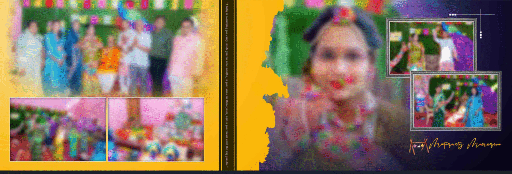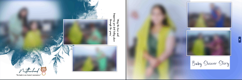 आम्ही प्रोफेशनल Photo Album Designers असून Baby Shower, Maternity Shoot, Newborn Shoot आणि Family Function Album Design मध्ये विशेष प्राविण्य मिळवले आहे. आधुनिक डिझाईन, आकर्षक लेआउट आणि भावनिक टच यांचा सुंदर मिलाफ करून आम्ही तुमच्या आठवणींना एक वेगळे रूप देतो.